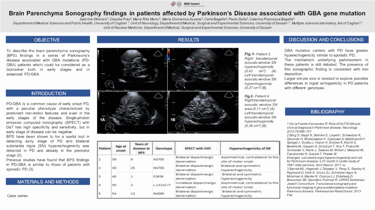 P169 Risultati dell'ecografia del parenchima cerebrale in pazienti affetti da malattia di Parkinson associata a mutazioni del gene GBA